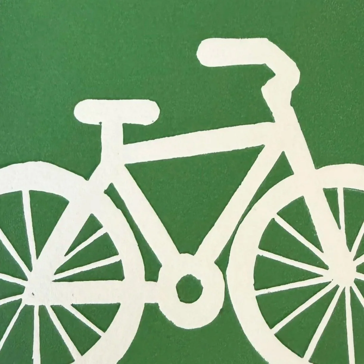 A graphic depiction of a bike carved onto a deep but bright green background.